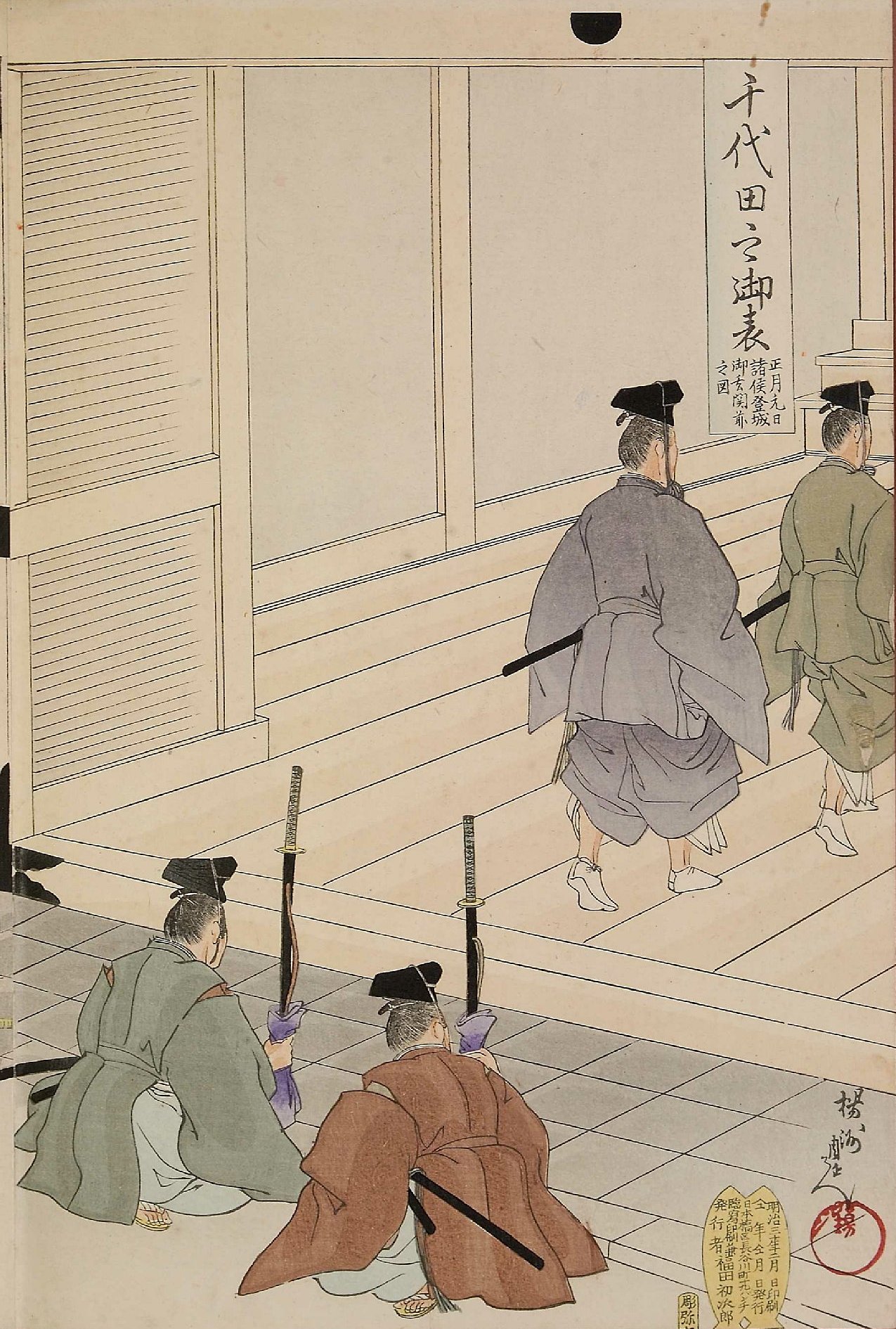 豊原周延 「千代田之御表」 「正月元日諸侯登城御玄関前之図」(1897)JPG 豊原周延 「千代田之御表」 「正月元日諸侯登城御玄関前之図」(1897) 投稿ナビゲーション 江戸の武士は「偉い人ほど激務」だった?暇すぎる下級武士の副業事情と格差社会
