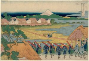 葛飾北斎 富嶽三十六景 Fuji Seen in the Distance from the Senju Pleasure Quarter from the series Thirty-six Views of Mount Fuji 葛飾北斎 富嶽三十六景 投稿ナビゲーション 一里塚はただの目印じゃない?家康が全国に作った「9メートルの巨大装置」の正体